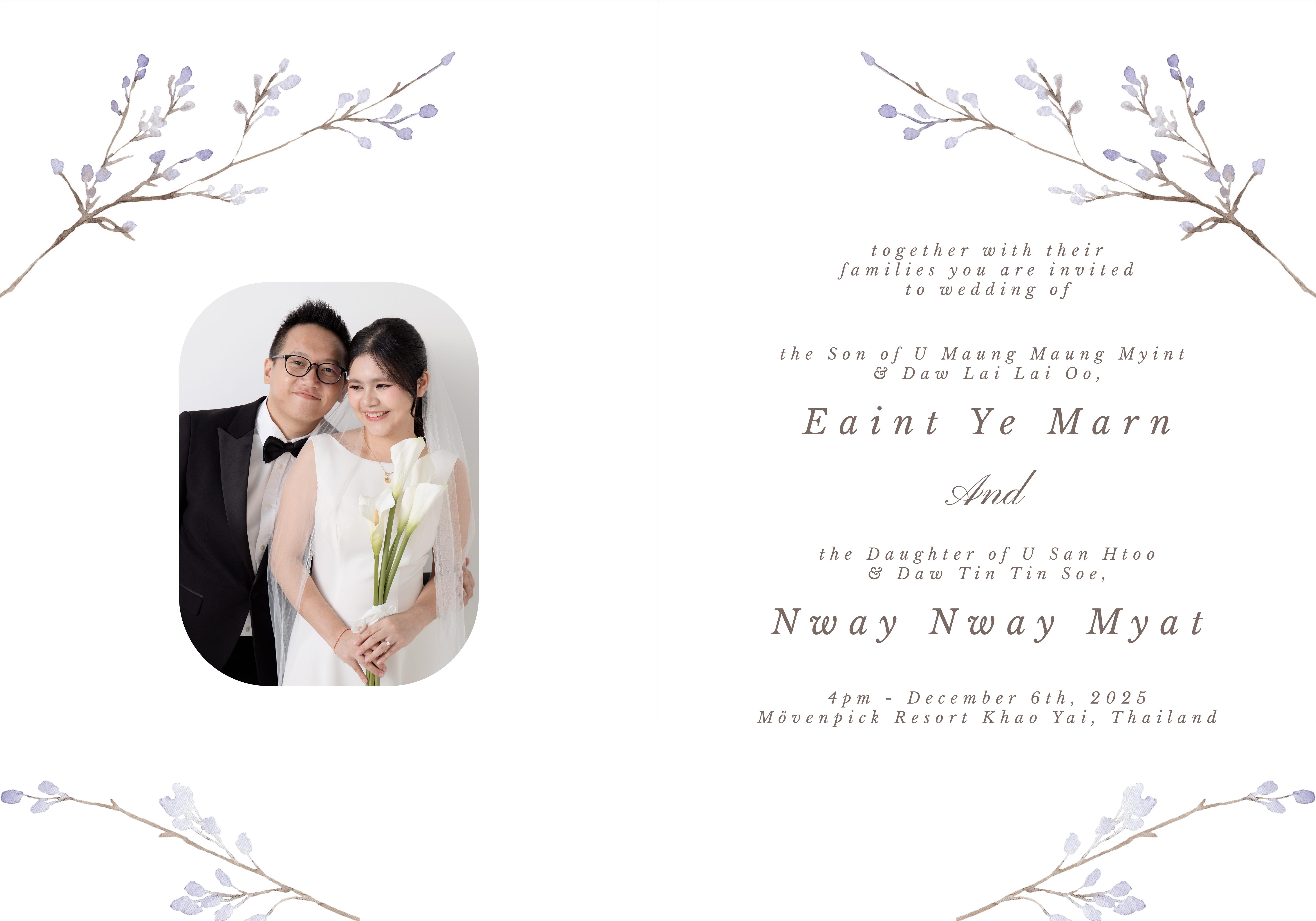 Congratulations to both of you on this wonderful journey! 🎊🐥❤️🐱🎊 Wishing every chapter of your life to be filled with love, laughter, support, and mutual understanding and may you always stand side by side through all the years, till old and grey. Cheers to Ye Marn & Nway Nway to the happily ever after. 🥂Zwe & Thinn EiOctober 23, 2025